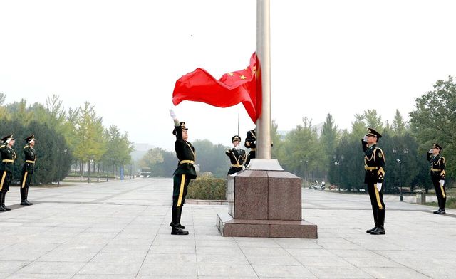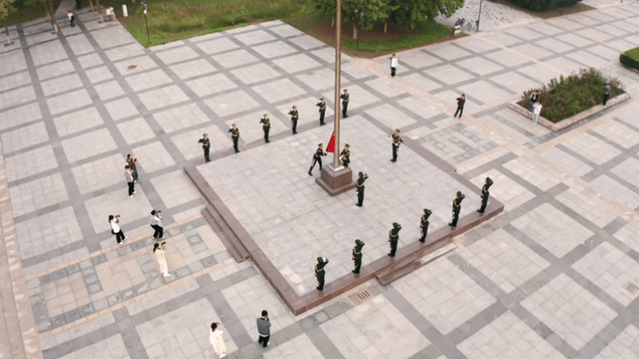 上午7时,师生整齐列队,庄严肃立。国旗护卫队迈着铿锵有力的步伐,护送国旗走向升旗台。在雄壮的《义勇军进行曲》中,五星红旗冉冉升起,迎风飘扬。全体师生注视国旗,高唱国歌,共同祝愿伟大祖国繁荣昌盛、人民幸福安康。
