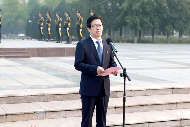 为庆祝中华人民共和国成立76周年,激发广大师生的爱国情怀和报国志向,9月30日清晨,学校举行升国旗广场会。党政领导班子成员张建华、徐杰、王承高、梁淑娟、孔令军、张忠、成敏、李士保、田玉胜、王世群、刘汉波出席活动。